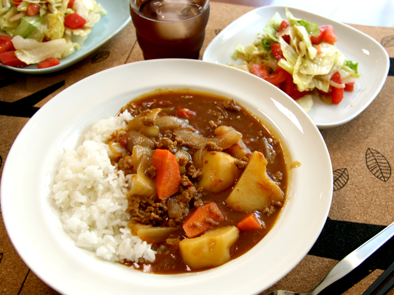 8/28(水)「神山家 特製カレー、レタスとトマトのサラダ」