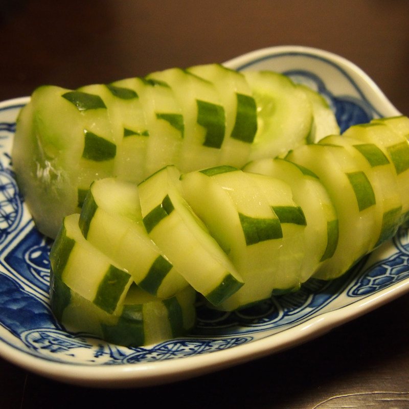 これも畑で採れた40センチ超の特太きゅうりを、タネも取らずにそのまま漬けて、ドスンドスンと厚めの輪切りにしたもの。